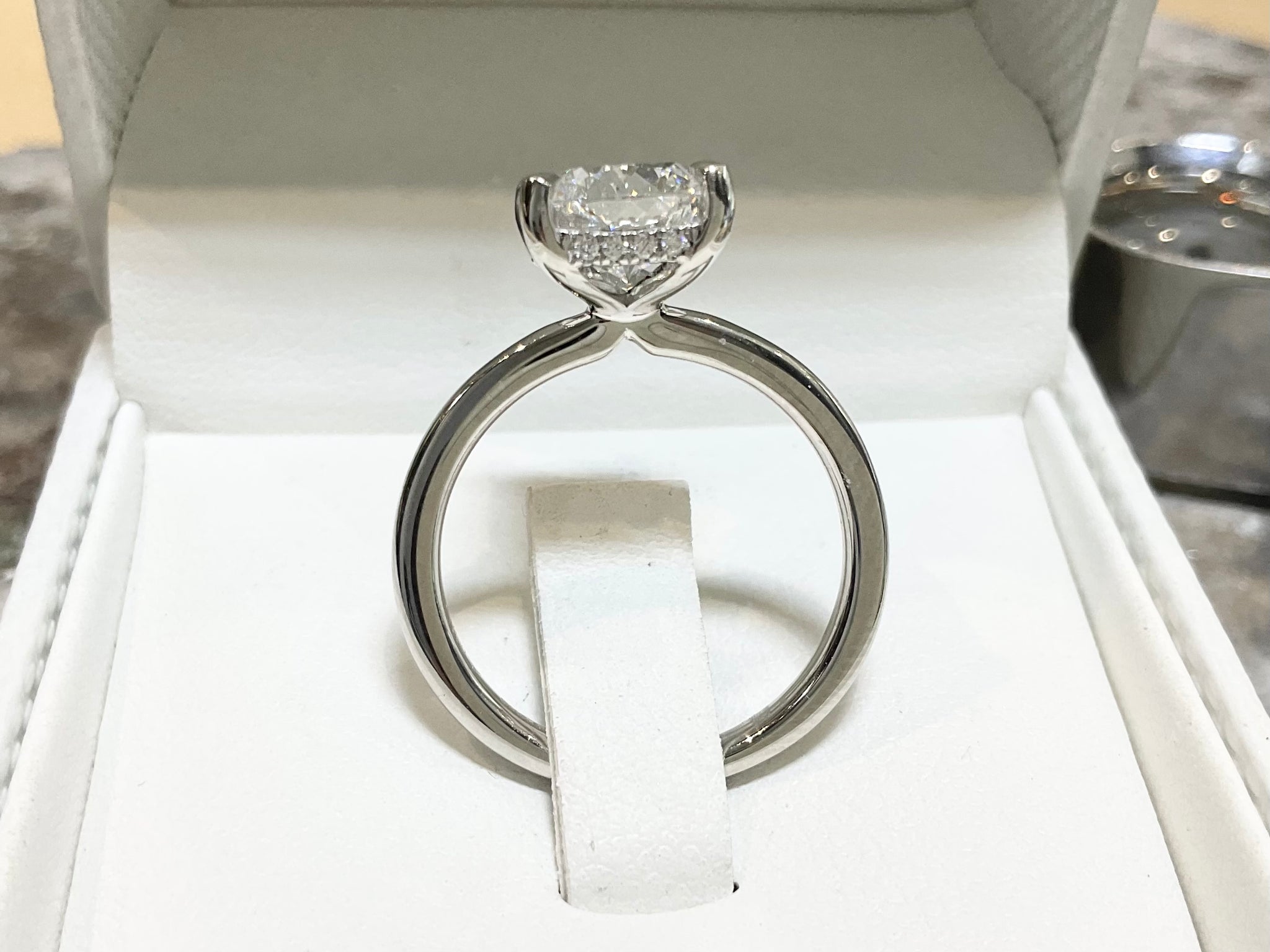 Adding a touch of hidden luxury, a delicate halo of natural mined diamonds (totaling 0.07ct) is tucked beneath the main stone — a subtle sparkle only visible from certain angles, creating an intimate, refined detail.