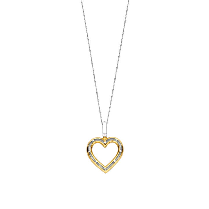 Embrace pure sentiment with this TI SENTO gold-plated silver Heart Pendant 6858ZY. Crafted from 925 sterling silver and plated with radiant yellow gold, its open heart silhouette symbolises connection and love in its most timeless form. The sleek contour is suspended from a pavé-set bail, adding just a whisper of sparkle to its soft, sculptural lines. Worn close to the heart, it’s a daily reminder of affection, elegance, and enduring style. Nickel-free and hypoallergenic, designed with care for lasting comfort and grace. The pendant comes with a dainty silver chain necklace.