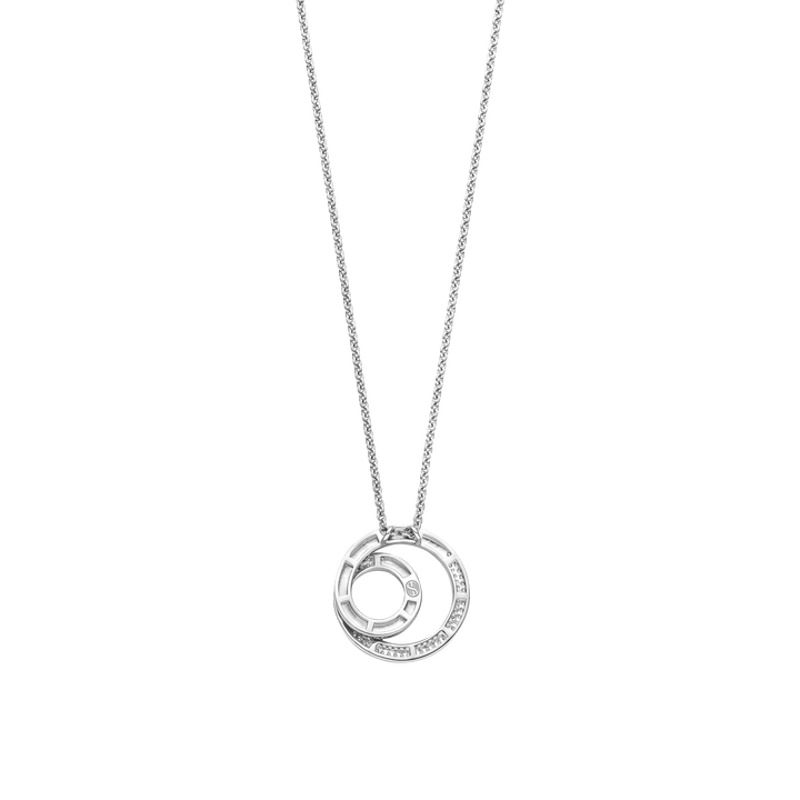 Embrace the harmony of contrast with this TI SENTO gold-plated silver Necklace 34109ZY. The pendant showcases two interlocking circles — one in high-shine yellow gold plating, the other adorned with pavé-set white cubic zirconia — creating a mesmerising play of light, movement and texture. Crafted from premium 925 sterling silver, this sculptural design exudes refined elegance, echoing architectural curves and timeless symbolism. The open-circle motif evokes unity and flow, making this designer necklace a meaningful addition to any jewellery collection .Ideal for layering or standing solo, this statement piece elevates everything from tailored daywear to fluid evening ensembles. Whether styled for work, events or everyday luxe, it adds just the right amount of sophistication and sparkle. Nickel-free and hypoallergenic, it promises lasting comfort with a luxurious finish.