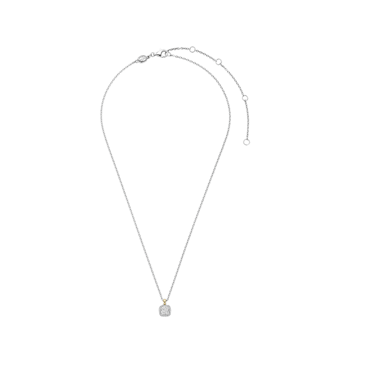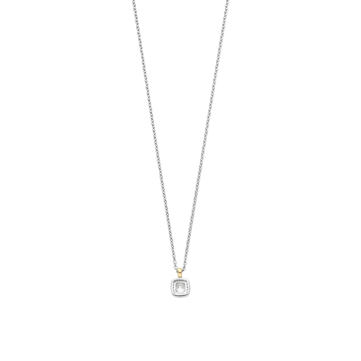 Elevate everyday elegance with this TI SENTO gold-plated silver Pendant Necklace 34103ZY. A cushion-cut cubic zirconia centrepiece is haloed by a delicate pavé of brilliant white stones, creating a refined play of depth and sparkle. The pendant hangs from a polished yellow gold-plated bail, suspended on a fine sterling silver chain for soft contrast. Crafted from premium 925 sterling silver and finished with both yellow gold plating and platinum-grade rhodium, this timeless necklace glows with light from every angle. Its compact 7mm silhouette delivers subtle glamour—perfect as a gift-worthy jewellery piece or as a sophisticated accent for day-to-night wear. A modern interpretation of classic solitaire necklaces and halo pendants, this design invites layering with longer chains. Nickel-free and hypoallergenic, it’s made for long-lasting beauty and effortless comfort.