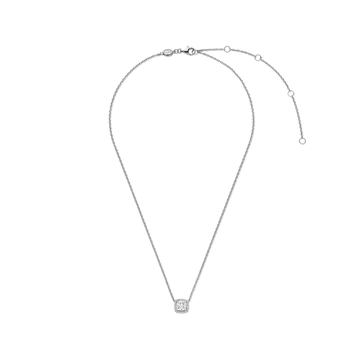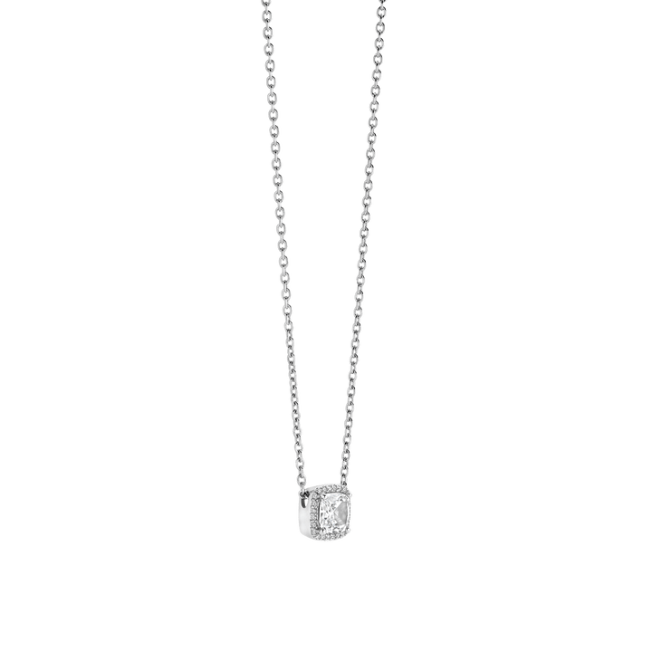 Discover everyday sophistication with this TI SENTO silver Pendant Necklace 34104ZI. A cushion-cut white cubic zirconia, framed by a fine pavé of brilliant stones, anchors this elegant design with light-catching brilliance. The pendant is seamlessly integrated into a fine sterling silver chain, creating a clean, graceful silhouette that floats on the collarbone. Crafted from premium 925 sterling silver and coated with platinum-grade rhodium, this necklace offers long-lasting luminosity and tarnish resistance. At 8mm, the centrepiece makes a refined yet noticeable impression—ideal for adding sparkle to business tailoring or elevating your go-to jewellery stack. This timeless necklace bridges the worlds of solitaire jewellery and halo designs, making it a versatile choice for gifting, bridal styling, or everyday wear. Nickel-free and hypoallergenic, it promises lasting comfort and elevated elegance in every moment.