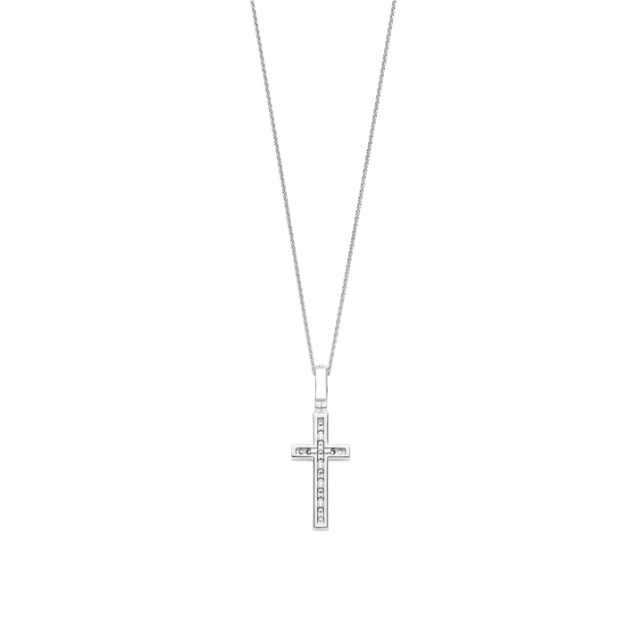Embrace symbolic elegance with this TI SENTO silver Cross Pendant 6857ZI. Crafted from 925 sterling silver and handset with brilliant-cut cubic zirconia, the refined cross design radiates clarity and purpose. A smooth bail and delicate anchor chain balance its geometric presence with timeless subtlety. Worn alone or layered, it offers a meaningful accent to any look. Nickel-free and hypoallergenic, it’s designed for enduring comfort and sentiment. The pendant comes with a dainty silver chain necklace.